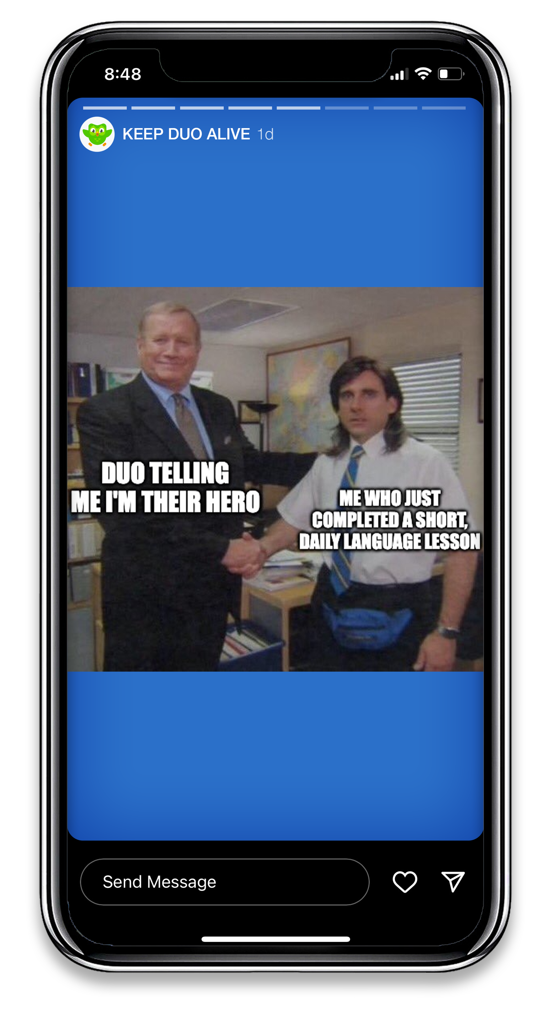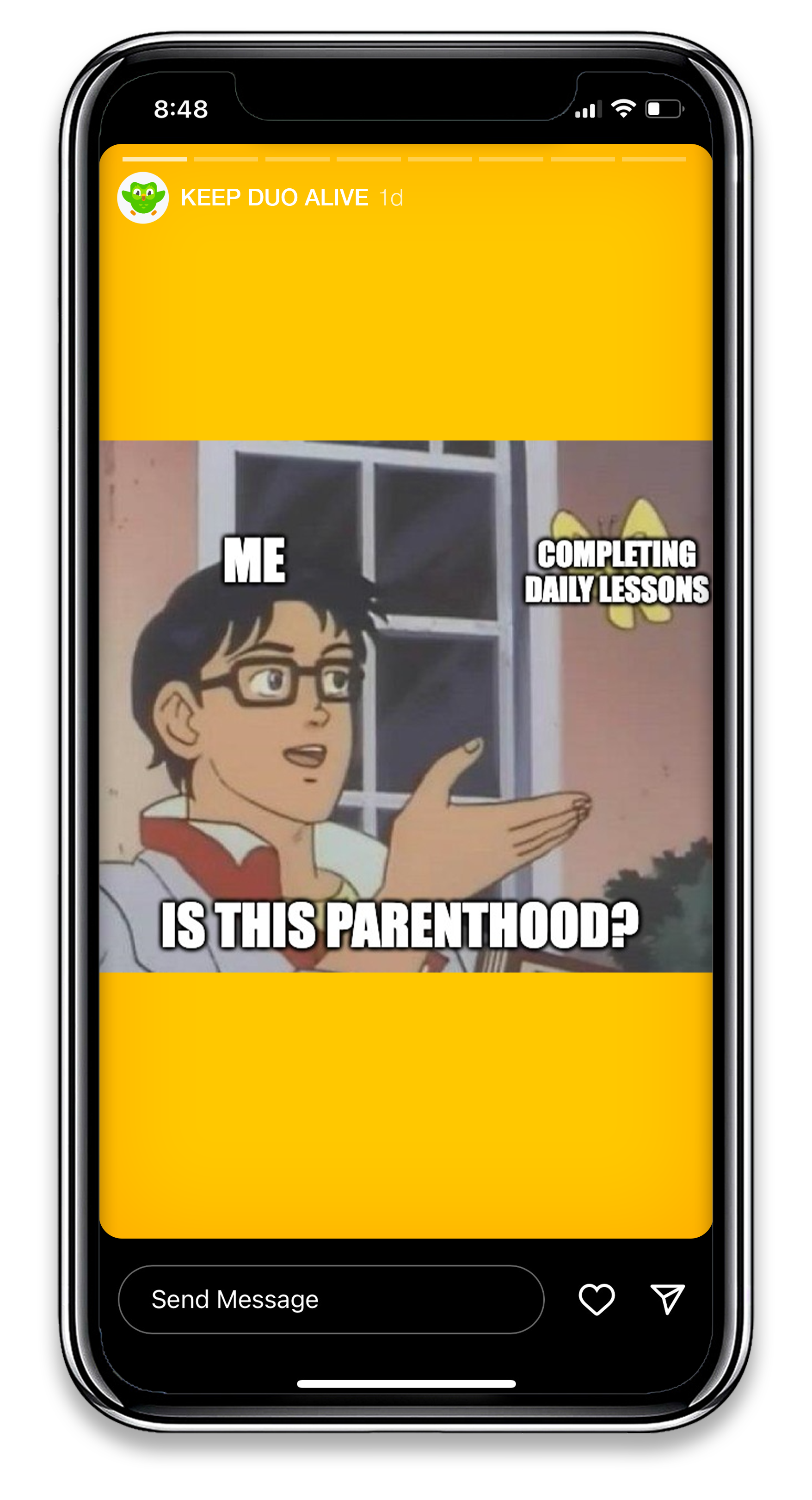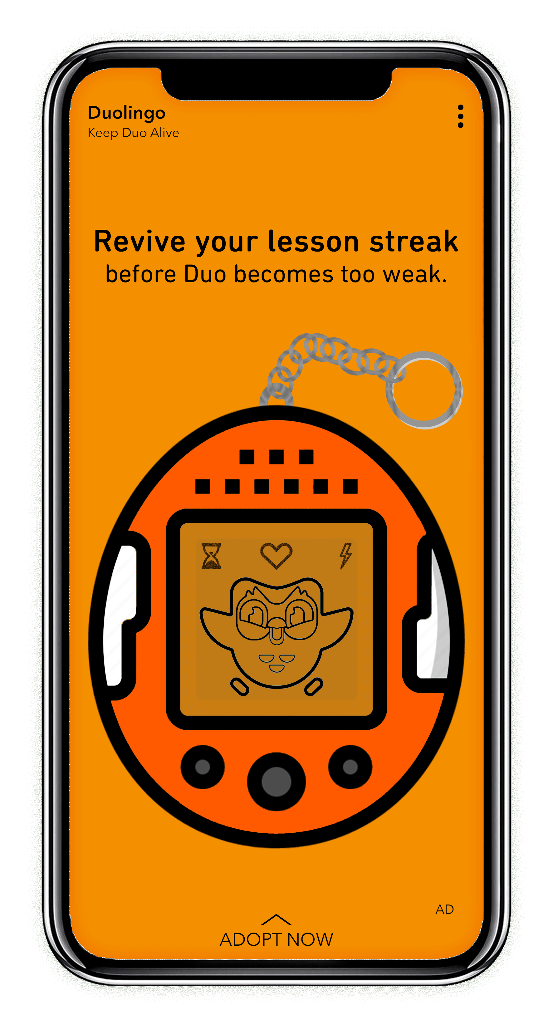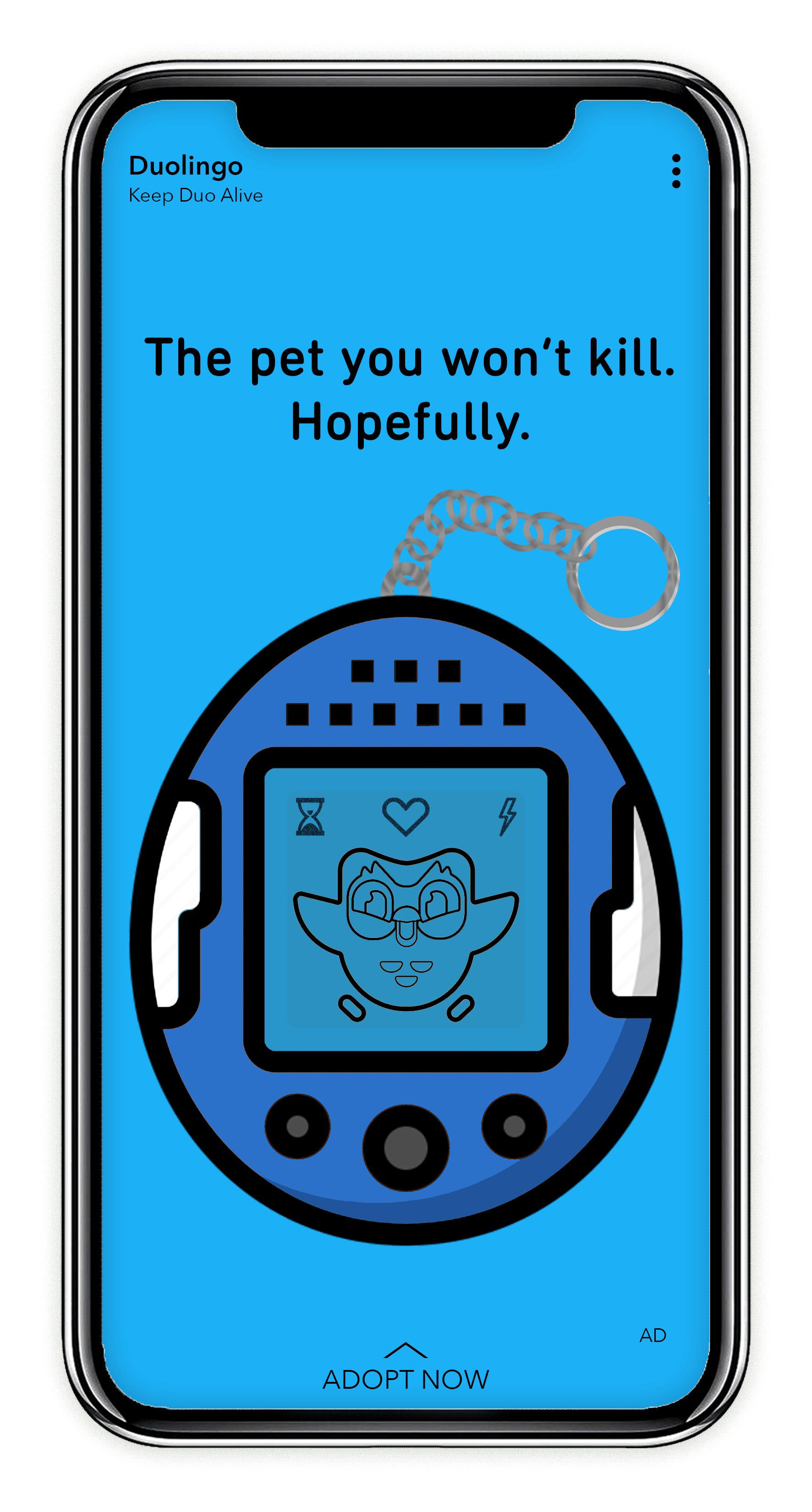 So we created a campaign inspired by all of our dead Tamagotchi that incentivizes people to learn. Because if you don’t keep your lesson streak, Duo will die.